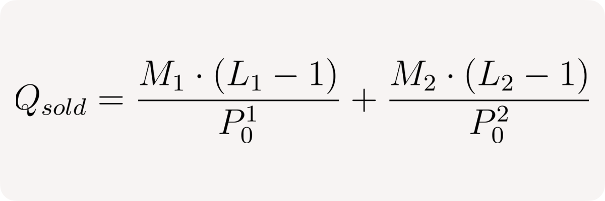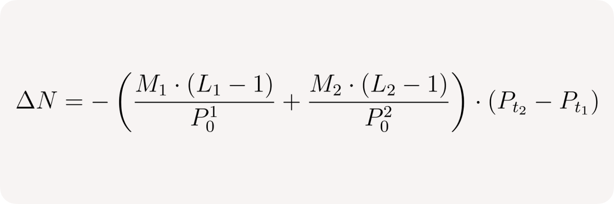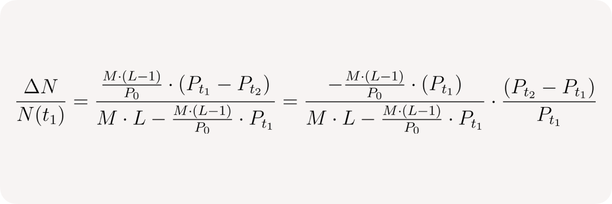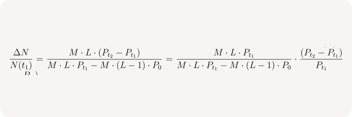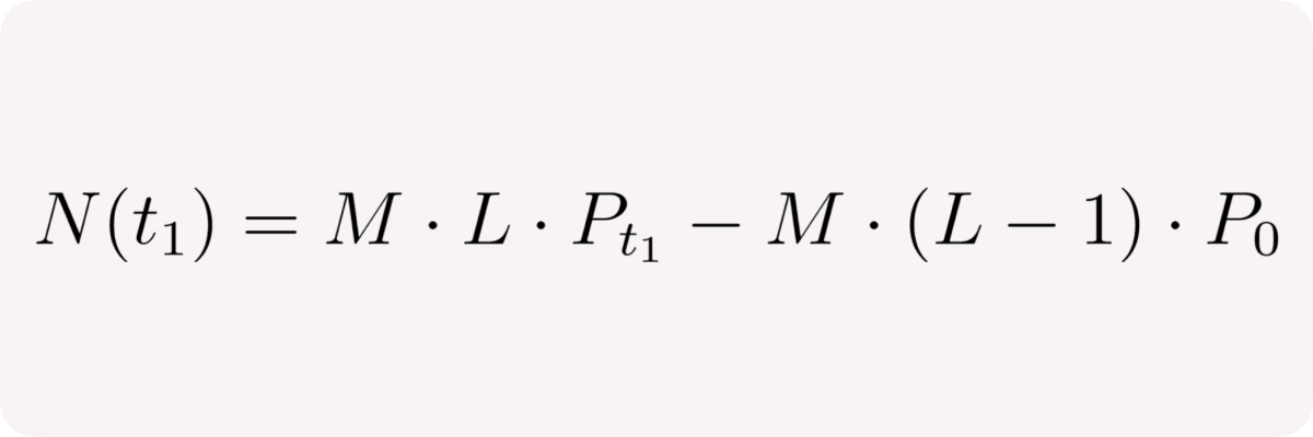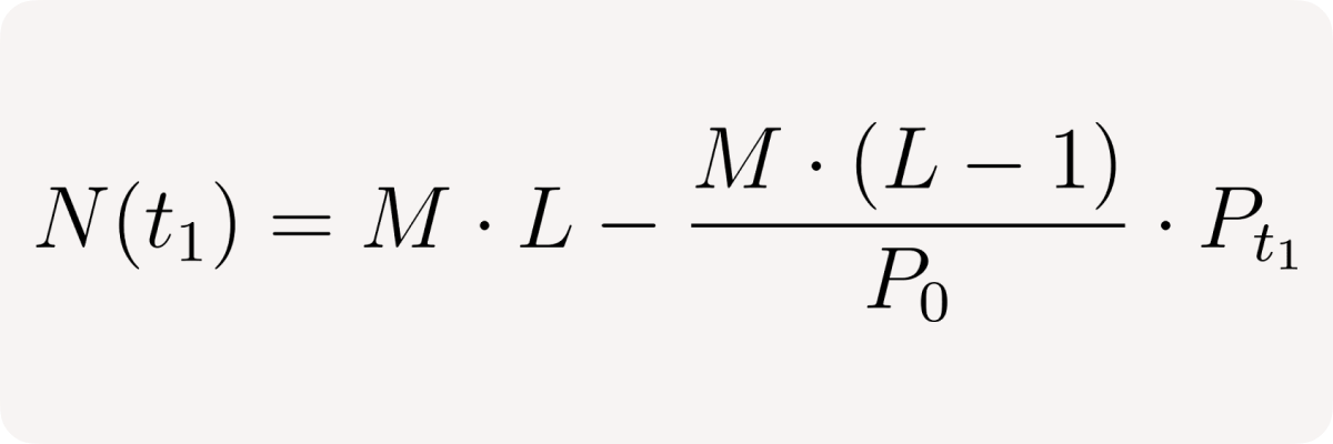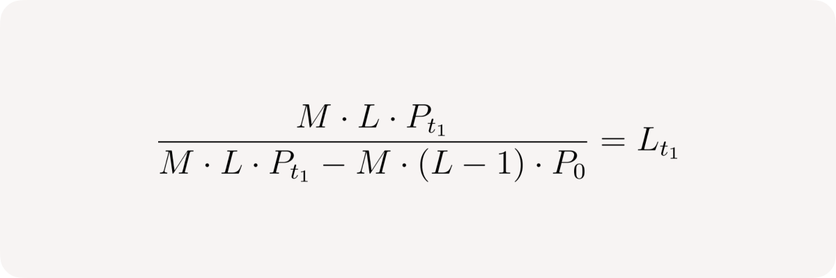 - User effectively sells M * (L - 1) /P₀ base tokens