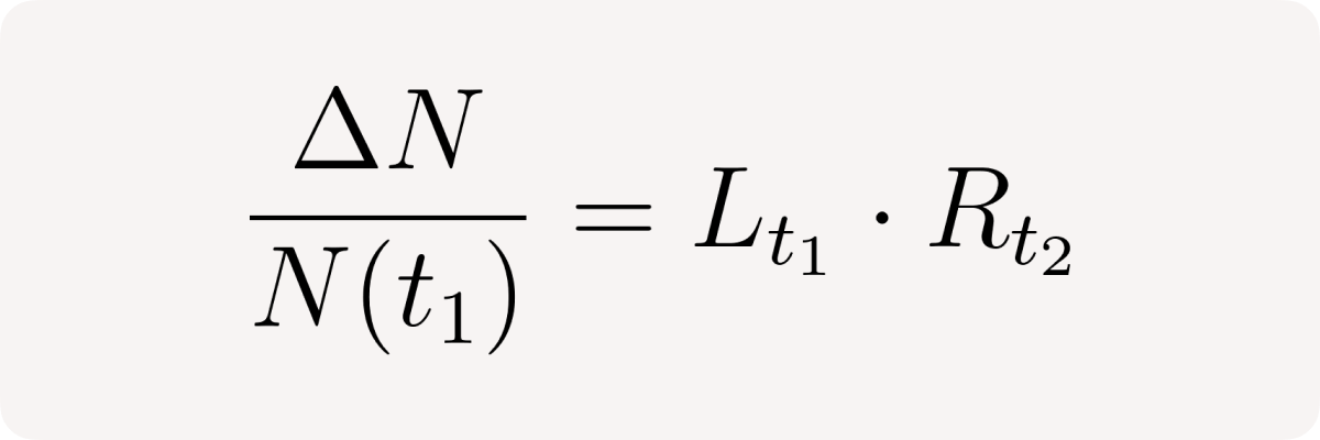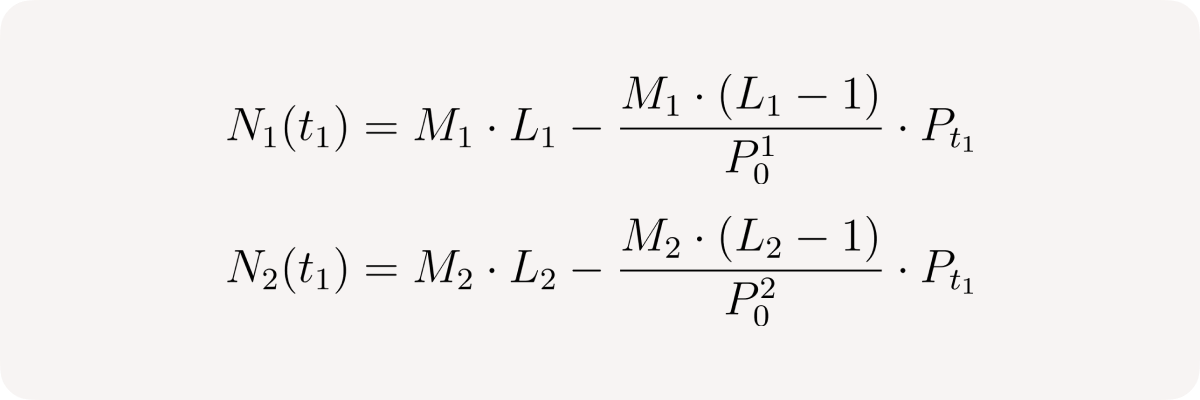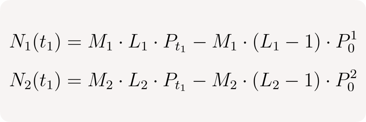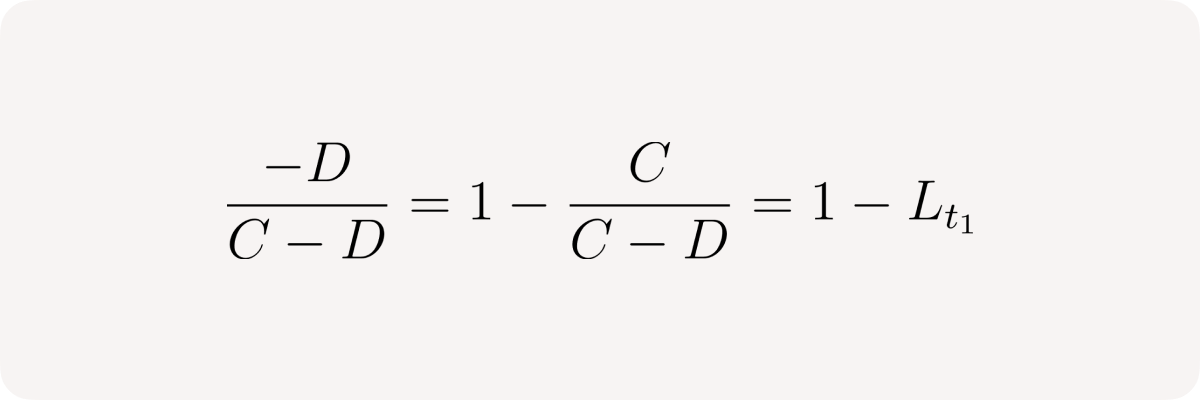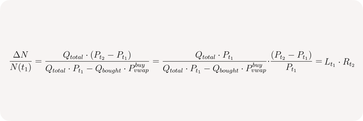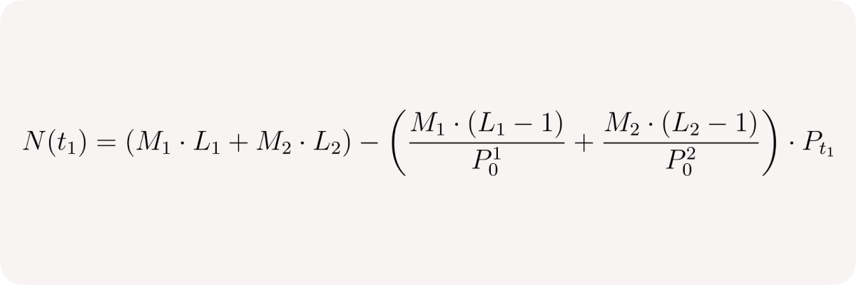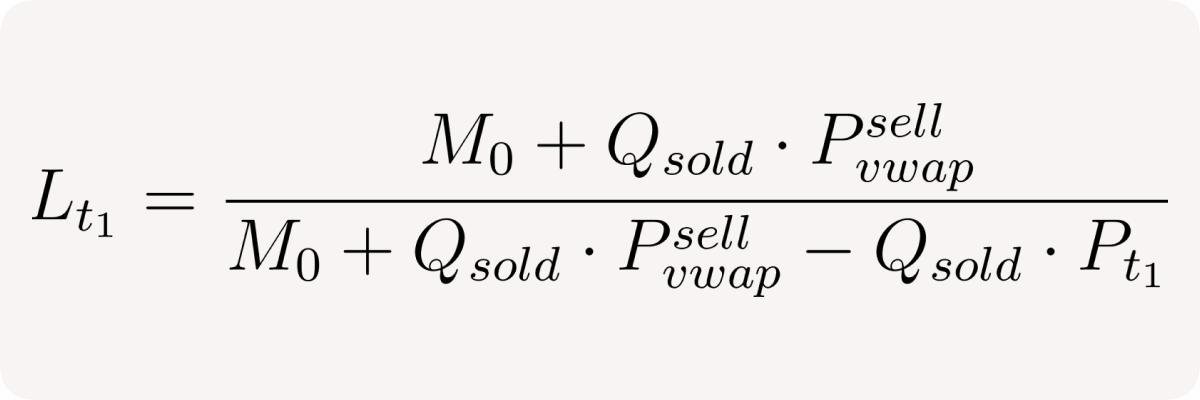 The left fraction is the current position leverage at time t₁: