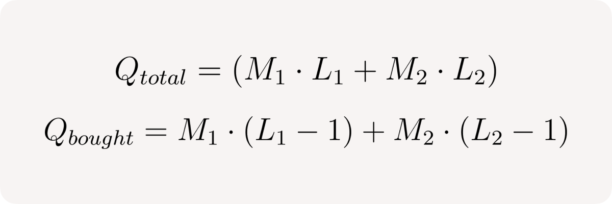 - User buys M * (L - 1) base tokens to get leverage L