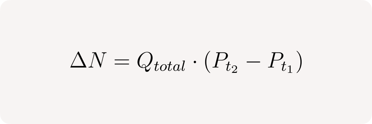 Now let's consider change in pool's net position or delta between times t₁ and t₂ given that no other trades occur in between: