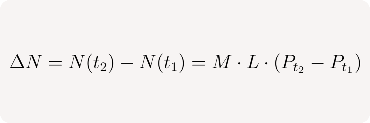 so, finally, the relative net position change between times t₁ and t₂ is: