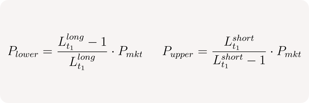 If we know marginal prices, we know exactly when either net long or net short position of our pool becomes zero - that’s where we could hedge it using Uni v3 concentrated liquidity: we must unwind the long position when market price reaches P_lower, and unwind the short position when market price reaches P_upper. I’ve covered this approach in the previous write-up on marginly risks in the Architecture considerations for Marginly v2 article.