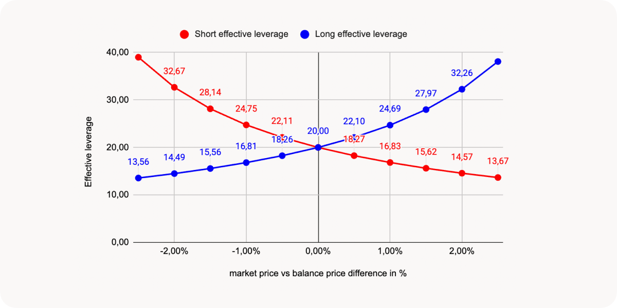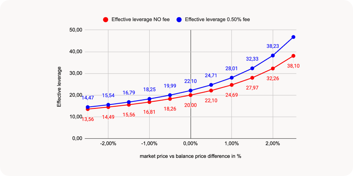 So if we think that our combined fees are not going to be higher than ~1%, the maximum leverage we can set is x100. Not bad, you might say, but we haven’t taken into account possible balance and market price discrepancies.